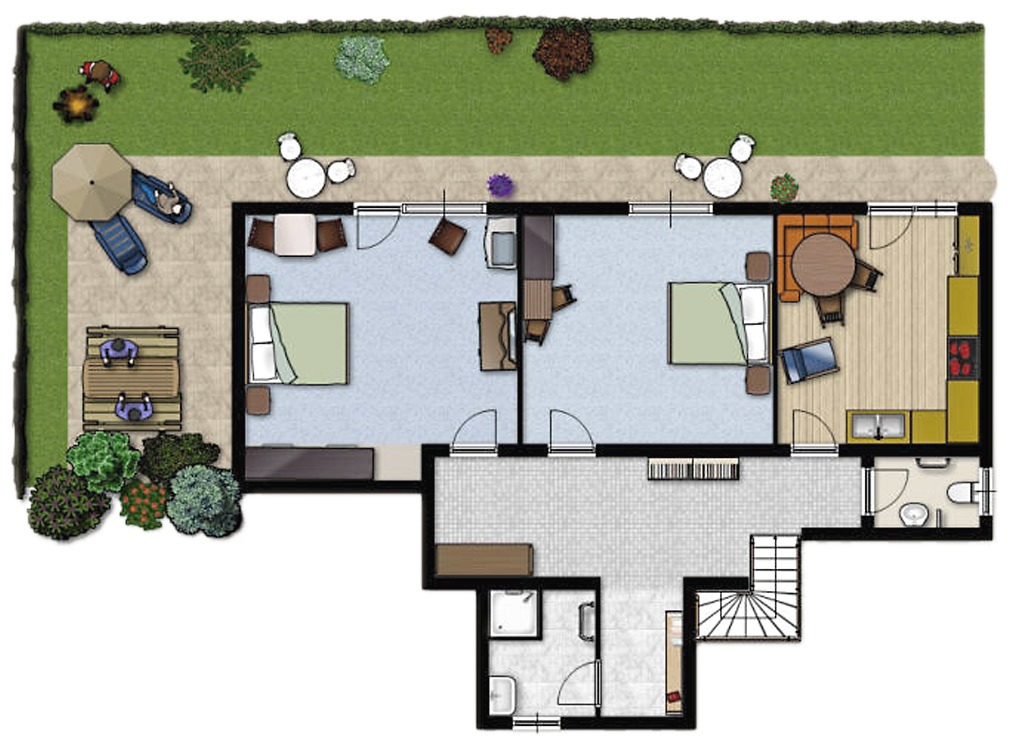 Das Herzstück der Wohnung ist die liebevoll gestaltete Terrasse: